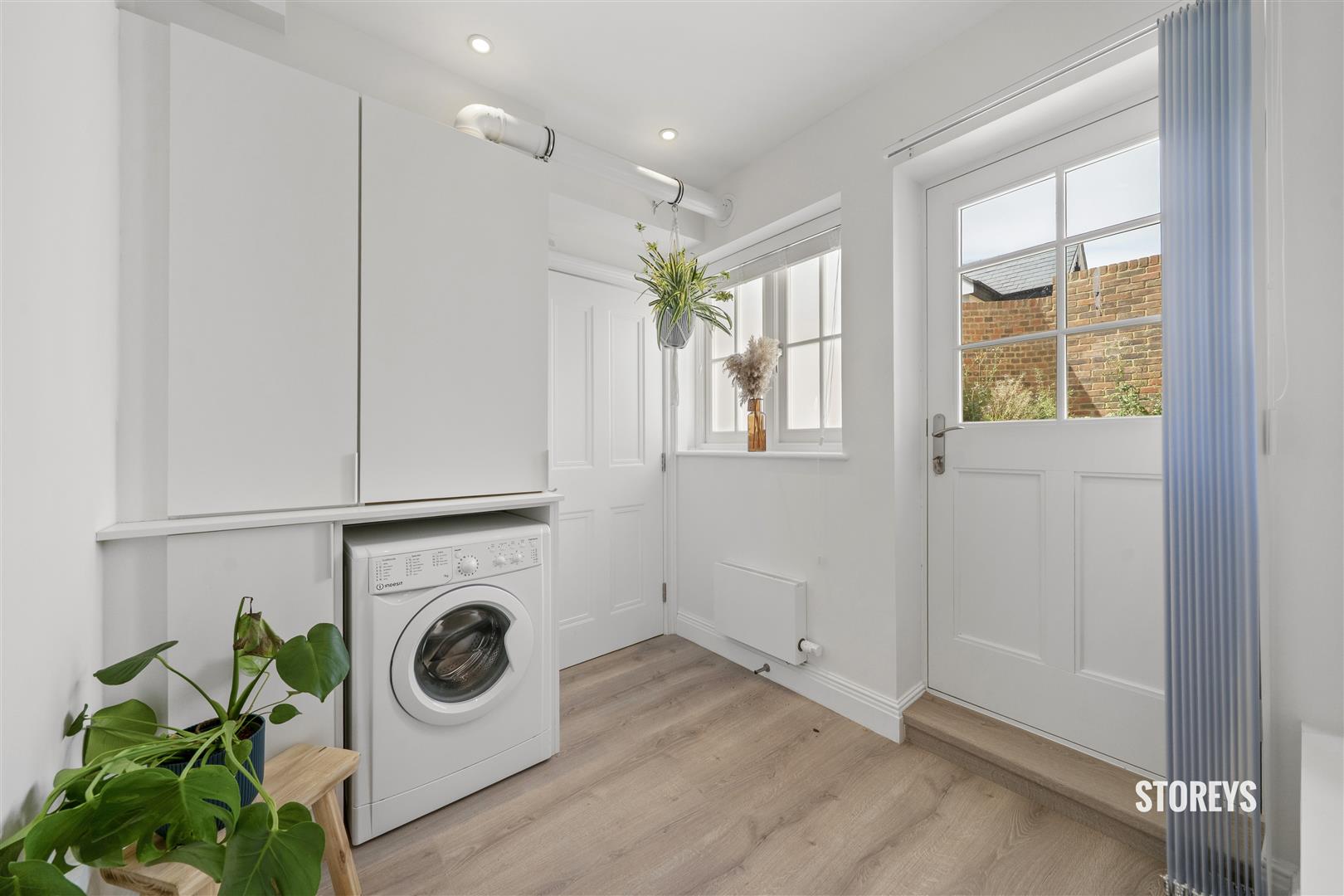 As you enter the property into a large open hallway with desk space underneath the staircase, spacious high specification eat-in kitchen perfect for entertaining, with integrated appliances and plenty of worktop space. Cosy living space with large sash windows and patio doors which lead you out to a fully patioed secluded courtyard, utility room with new boiler system and guest W.C.