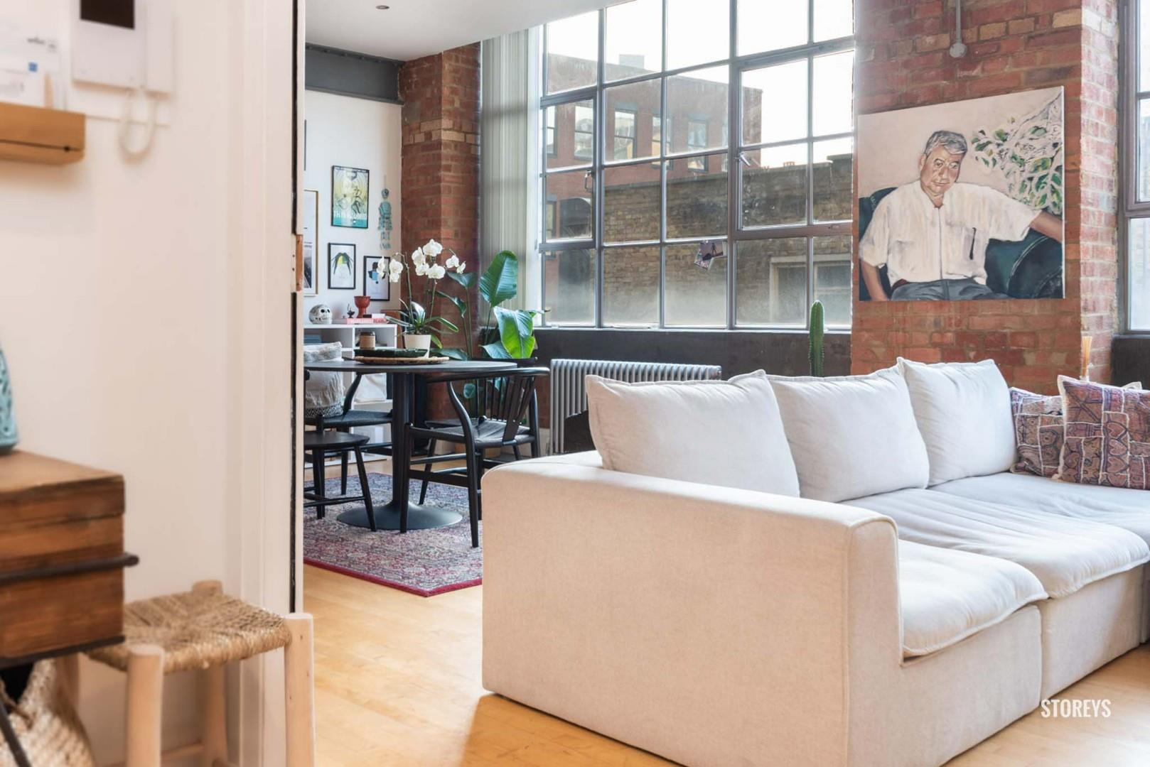 The Storey: Incredible Hoxton loft apartment spanning (784 sqft approx.) situated on the third floor of this stunning warehouse building in Shoreditch N1.