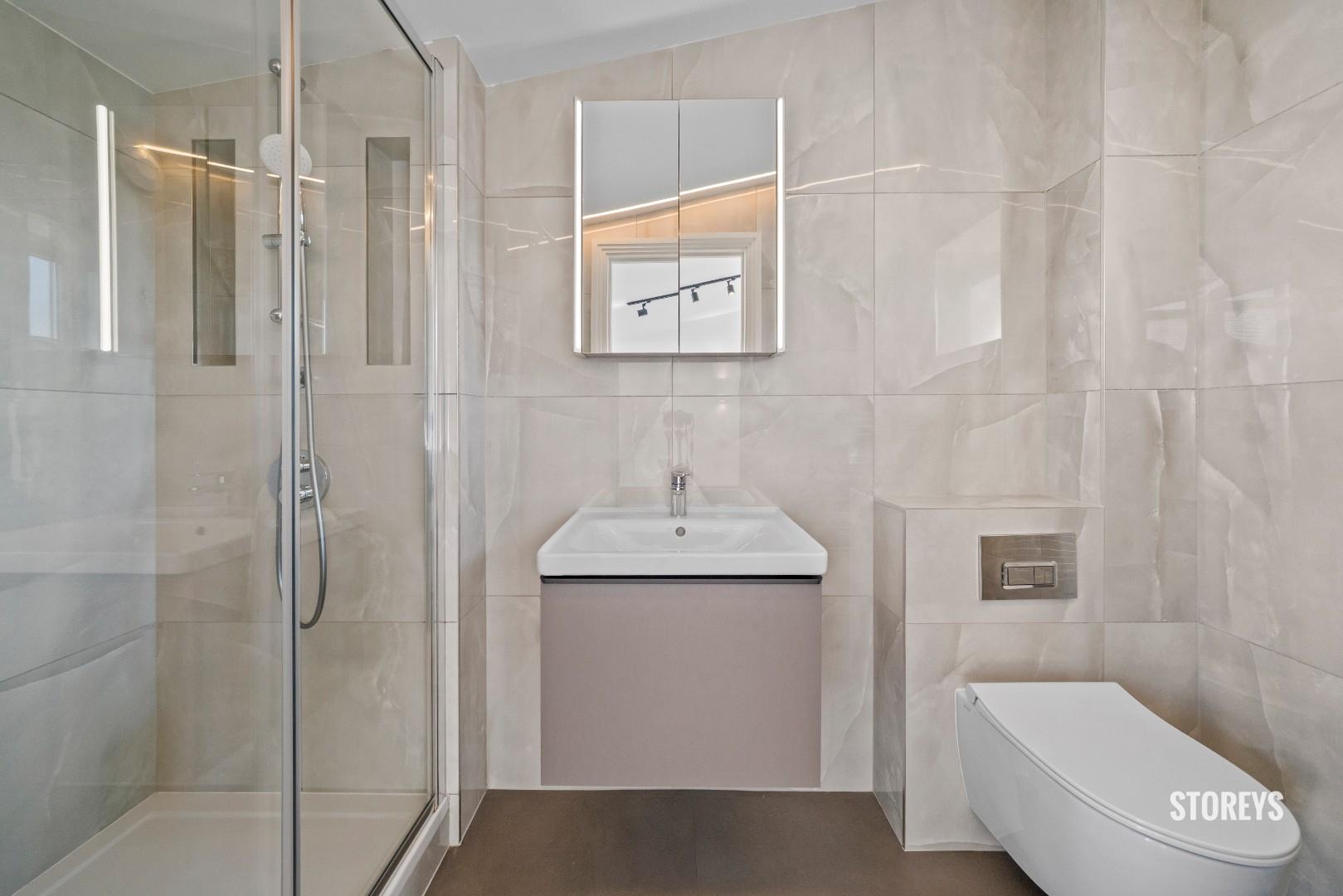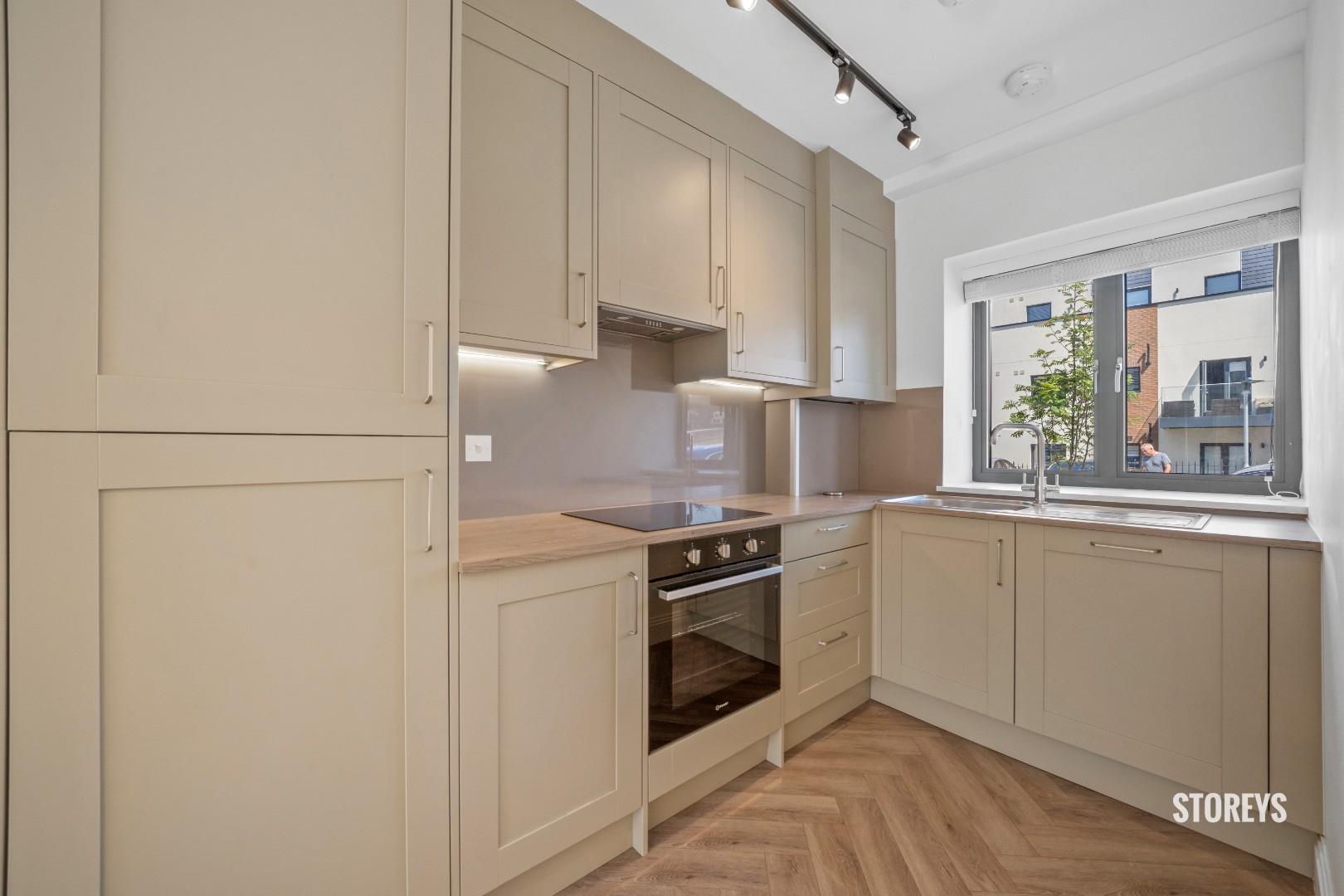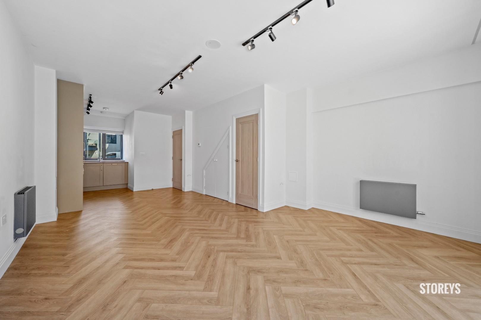 Beautifully presented with an open plan kitchen/ living room on the ground floor along with one of the large bedrooms and shower suite. Bay windows and dark brown sleek wooden flooring throughout and a two-tone modern kitchen with strip lighting and integrated appliances.