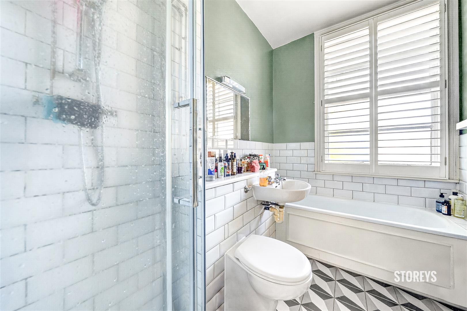 Accessed via its own private entrance, this home offers a wonderful sense of space and privacy. The raised ground floor hosts a generous living area, flowing seamlessly into a dedicated dining space with original double doors adding both character and versatility. The property further benefits from a guest WC, two well-proportioned double bedrooms with built-in storage, and a stylish modern bathroom featuring both bath and separate shower.