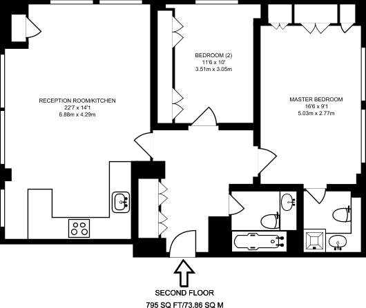 Two double bedrooms, two bathrooms and an open living space in a secure development. Fantastic location!