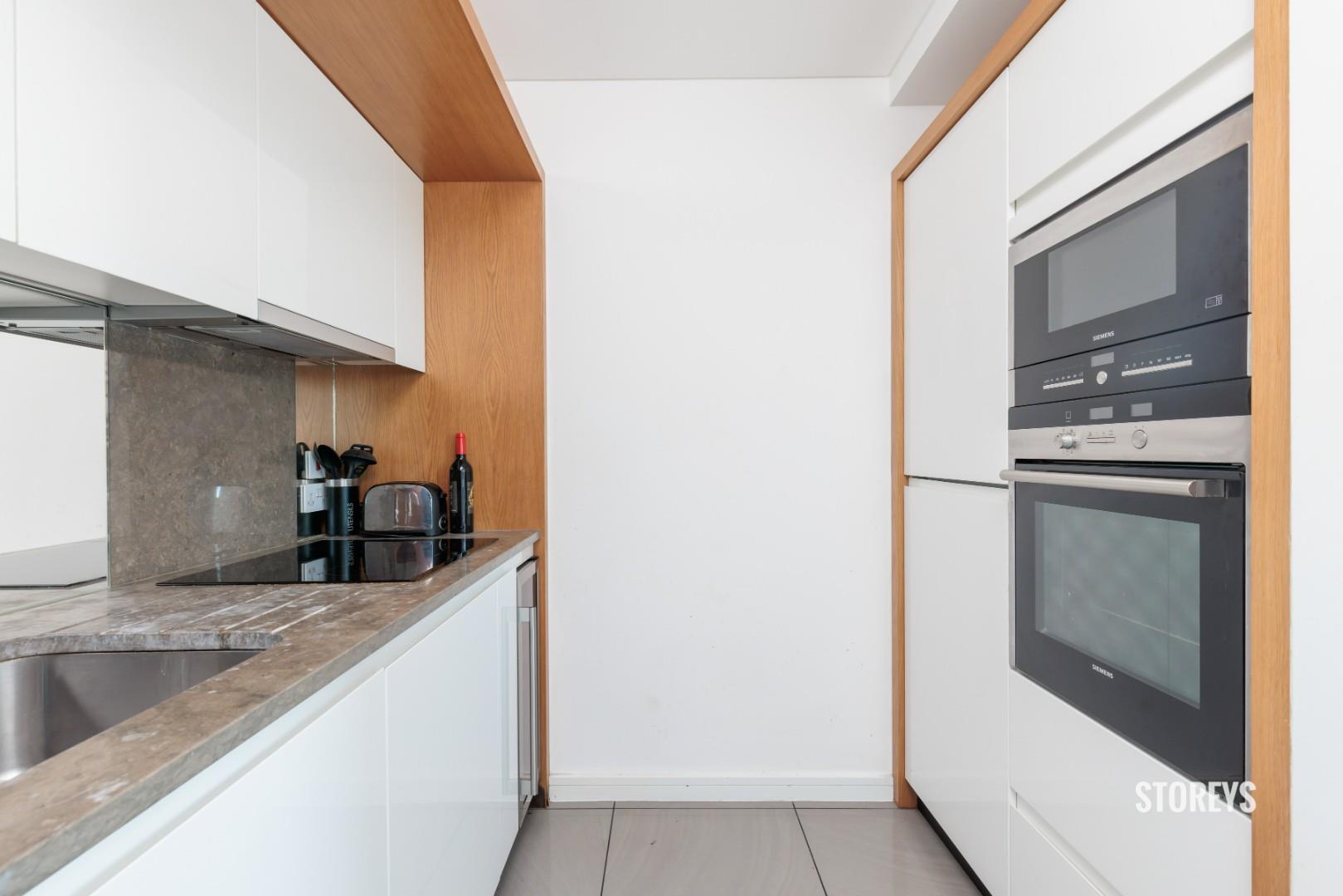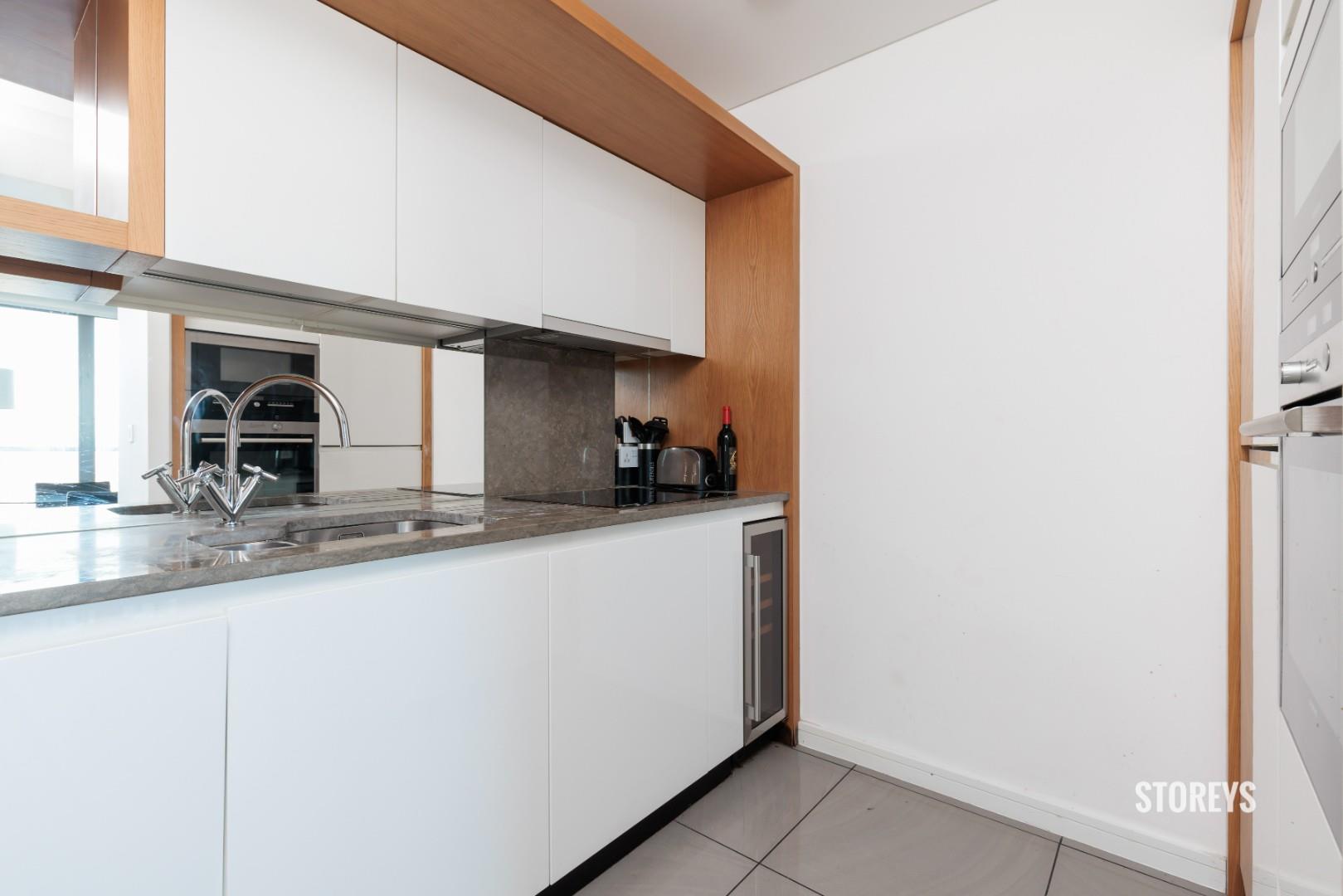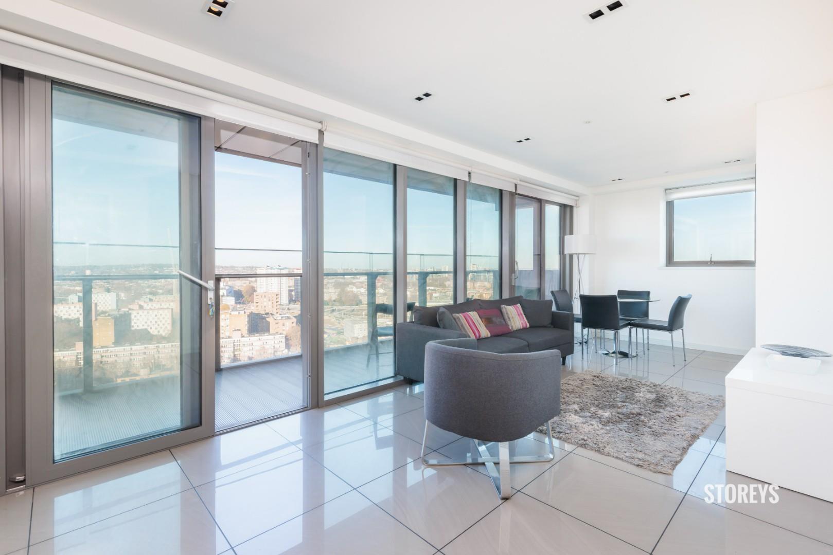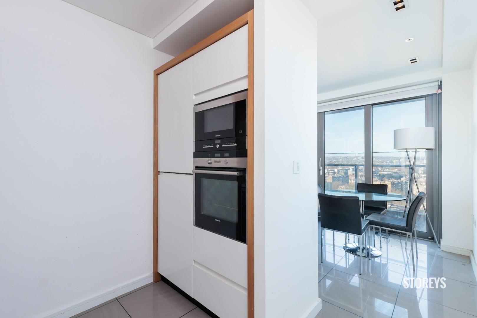 Offering a large open living space with a modern, fully equipped kitchen and sleek wooden flooring throughout leading to private full width balcony with views across the entirety of London. Three modern and stylish double bedrooms, the master benefiting from an en- suite. Ample storage space and an array of sunlight. 24 hour concierge service and intercom system included within the development.