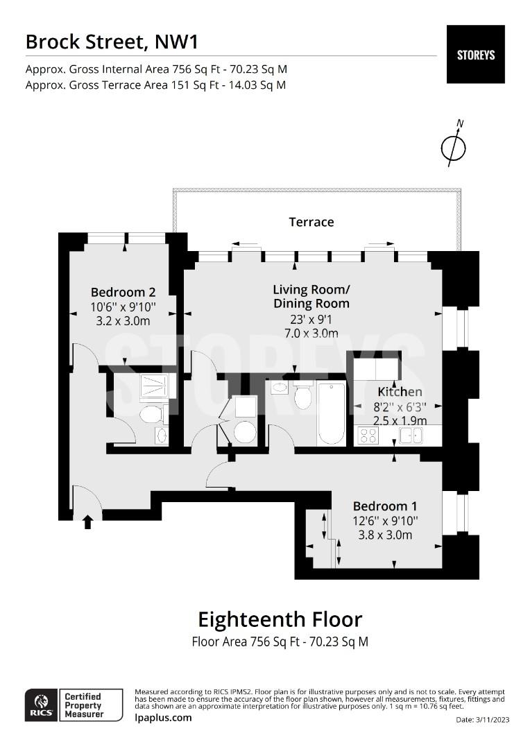 The Storey: Superb 756 Sq. ft two-bedroom, two bathroom apartment on the 10th floor of the impressive Triton Building development between Fitzrovia and Euston, NW1.